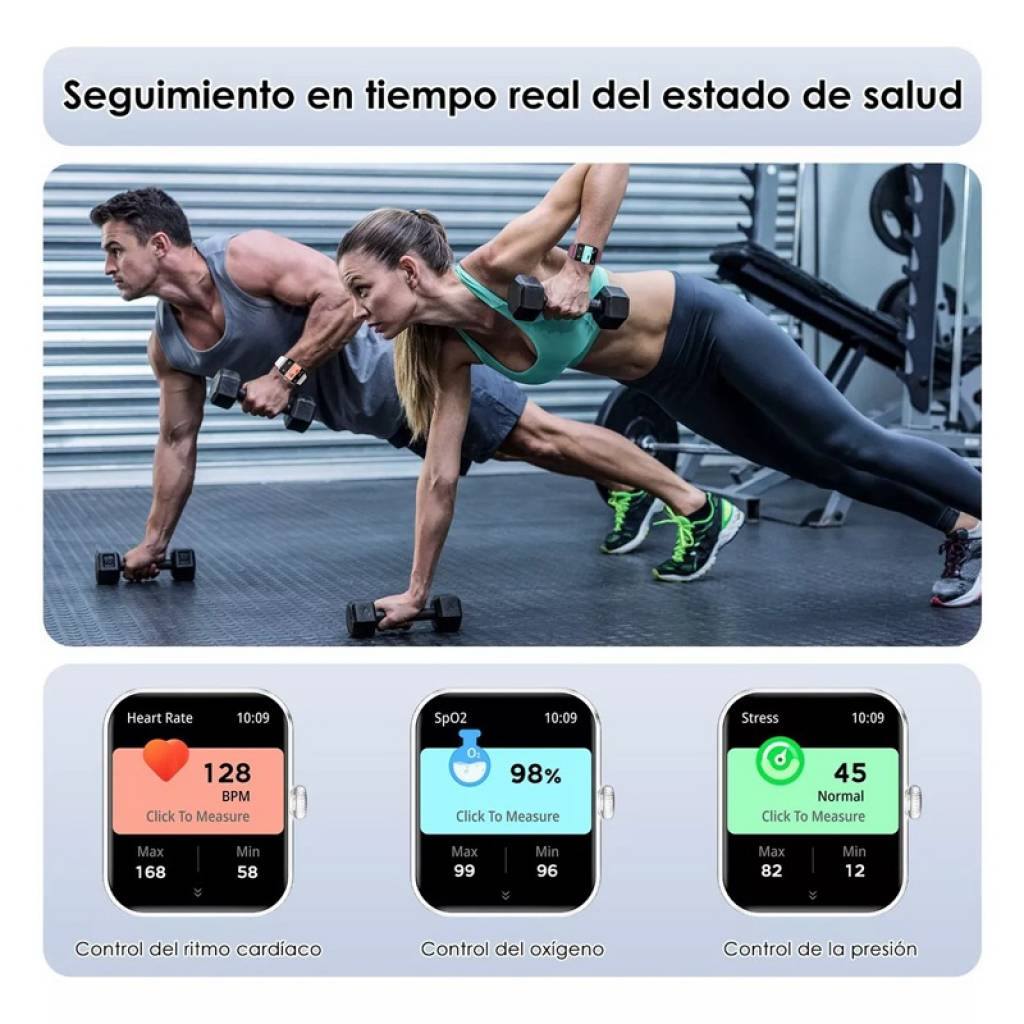 El Reloj Smartwatch Blackview R50 es la combinación perfecta de estilo y funcionalidad. Este reloj inteligente cuenta con una pantalla TFT de 1.85 pulgadas, tecnología táctil y alta definición que te permitirá disfrutar de una experiencia visual excepcional y una navegación sencilla e intuitiva. Es ideal tanto para uso casual como deportivo. Certificado con una resistencia al agua IP68, el Blackview R50 es tu compañero perfecto para cualquier aventura, ya sea nadar, correr bajo la lluvia o someterse a entrenamientos intensos. Equipado con una potente batería de 350 mAh, el reloj ofrece hasta 5 días de uso continuo y hasta 25 días en modo standby, lo que asegura que siempre estarás conectado sin preocuparte por la carga. Compatibilidad total con Android y iOS, conectividad Bluetooth, y funciones avanzadas como monitoreo de frecuencia cardíaca, nivel de oxígeno en sangre, monitor de sueño y más de 100 modos de deporte, este reloj se adapta perfectamente a tu estilo de vida activo. Además, puedes recibir y rechazar llamadas manos libres, controlar la música y cámara de tu smartphone, y recibir notificaciones de tus aplicaciones favoritas directamente en tu muñeca. El Blackview R50 es más que un reloj; es una herramienta integral para mejorar tu salud y calidad de vida, proporcionando indicadores vitales y datos detallados de tus actividades diarias