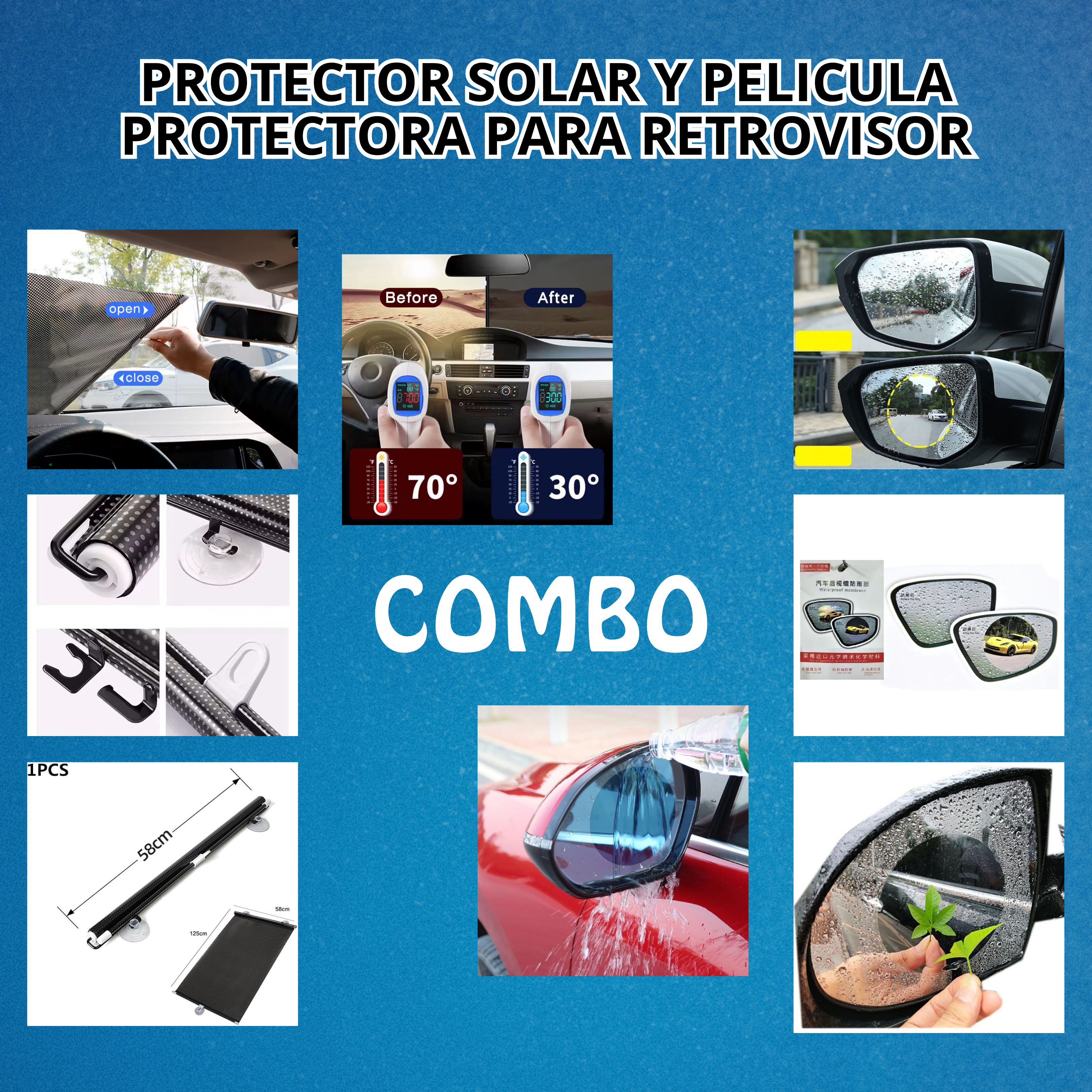 🚗 COMBO PROTECTOR SOLAR + PELÍCULA PARA RETROVISORES