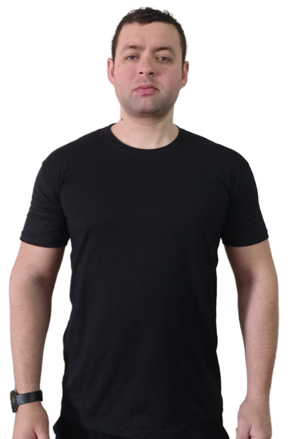 Esta remera negra básica para hombres no es solo una pieza de ropa, es una declaración de estilo y simplicidad. Fabricada con un algodón suave y resistente, se siente como un abrazo cómodo que te acompaña desde el momento en que la pones. Su corte limpio y ajustado resalta tu figura, dándote una apariencia segura y relajada al mismo tiempo.