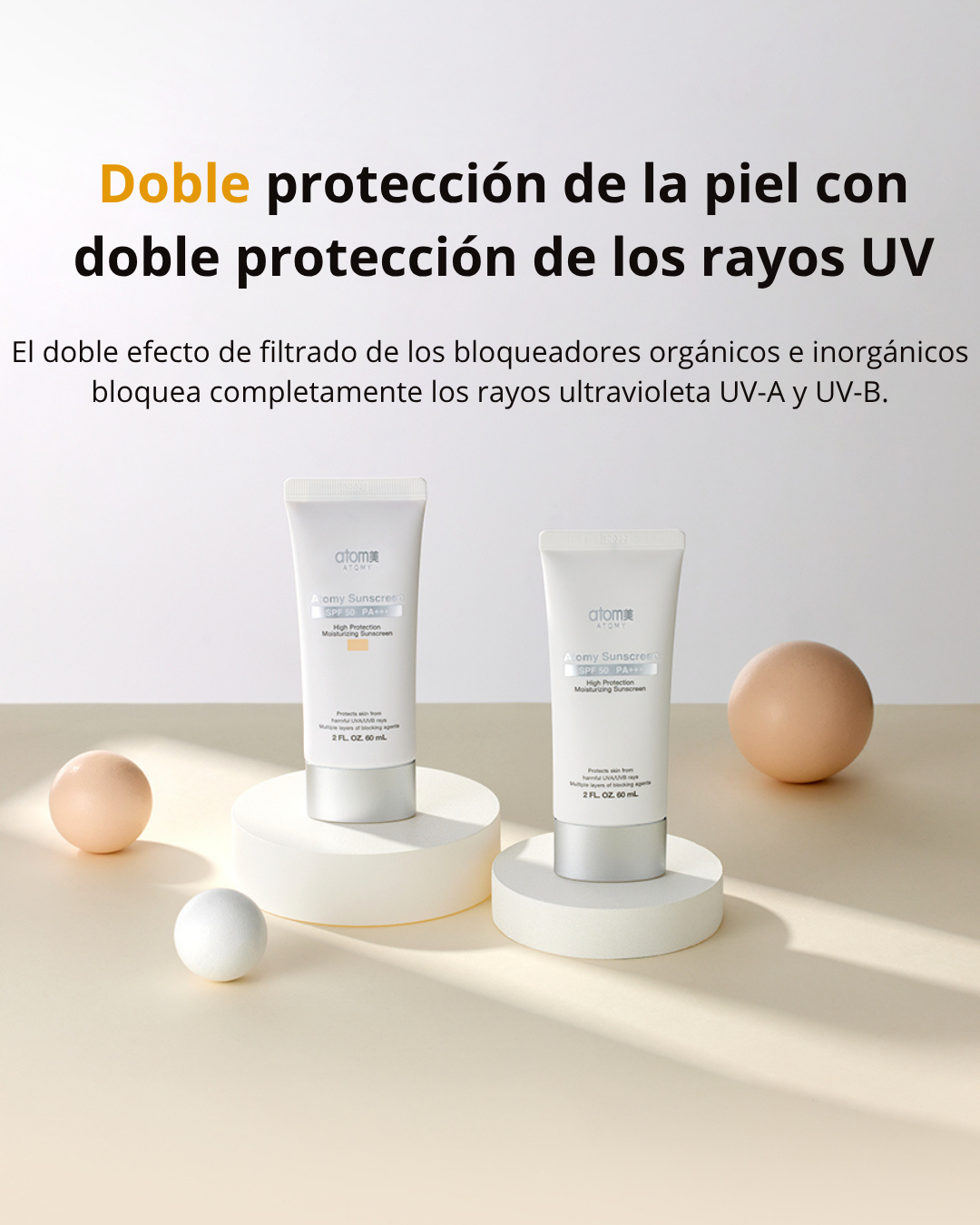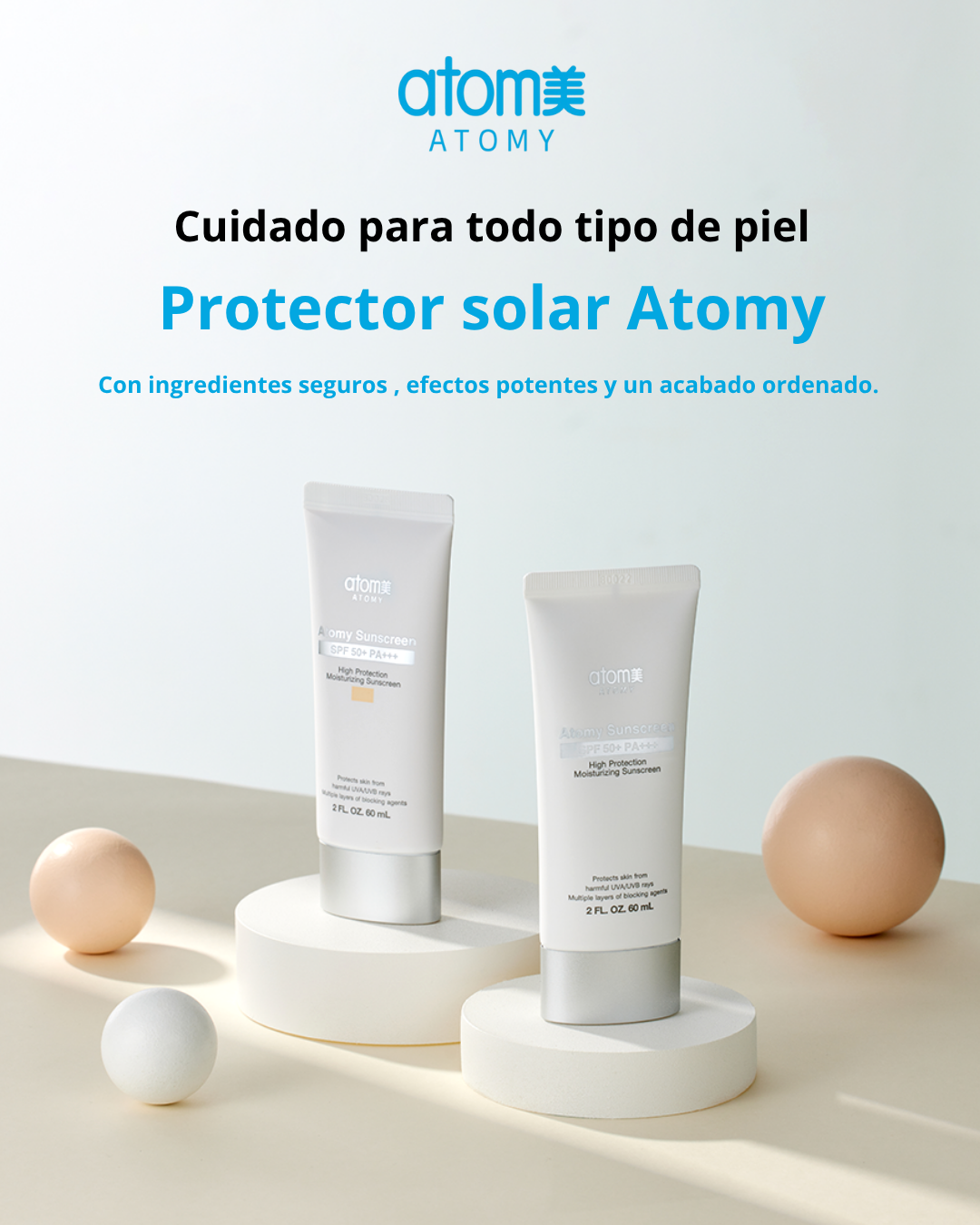 Descubre la defensa solar avanzada con el Protector Solar Atomy. Su fórmula combina filtros orgánicos e inorgánicos para brindar una doble barrera eficaz contra los rayos UVA y UVB. Diseñado para todo tipo de piel, este protector solar tiene una textura suave y ligera que no deja residuos blancos ni sensación pegajosa.