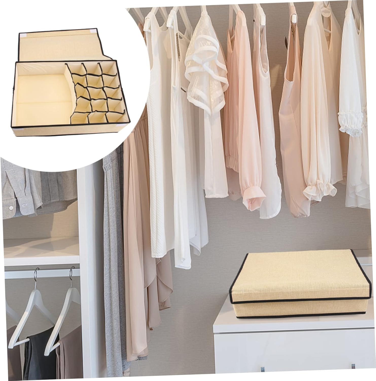 Cabilock Caja de almacenamiento plegable de tela, organizador de cajones para armario, aparador, cajón, organizador de cestas para ropa, cinturón, bufanda, corbatas, bragas, color beige Color limpio y elegante, diseño elegante, añade un toque final a la decoración de tu hogar.