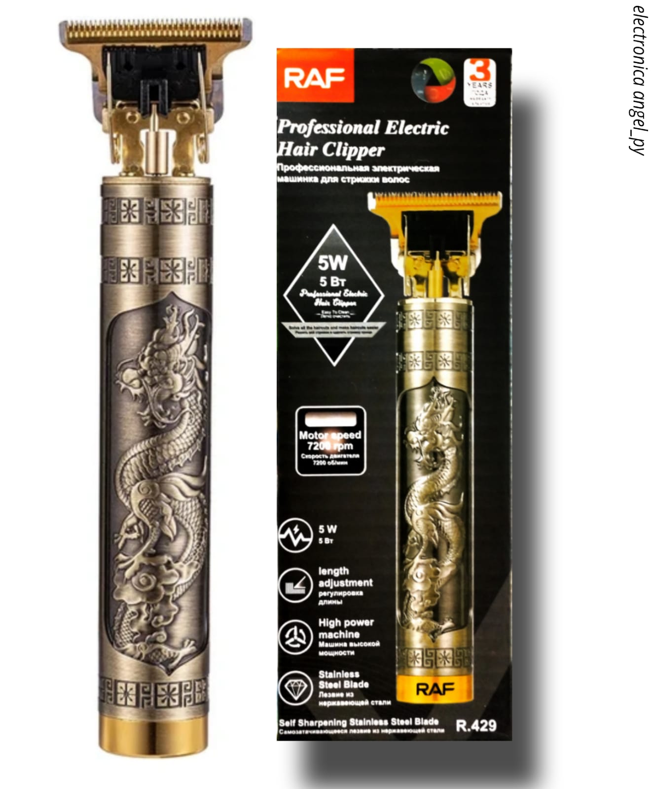 Máquina De Cortar Pelo Barba Y Patillera Profesional Raf Color Dorado