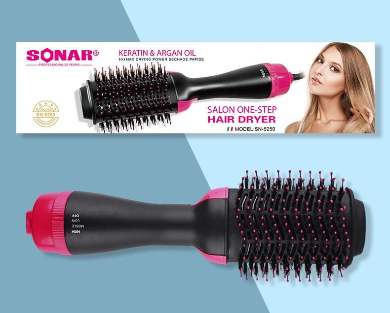 Existen productos que no puede faltar en tu tocador o espacio de belleza, algunos de ellos son los cepillos, la secadora y plancha de cabello, todos estos productos normalmente ocupan un gran espacio y por esta razón Sonar® fusiono lo mejor de estas herramientas en un solo producto y trae para ti el cepillo secador y alaciador SN-5250 este modelo cuenta con dos tipos de cerdas, control de tempera y una alta potencia que se encargará de secar, moldear, cuidar tu cabello y ayudarte a crear el look perfecto para cada ocasión.